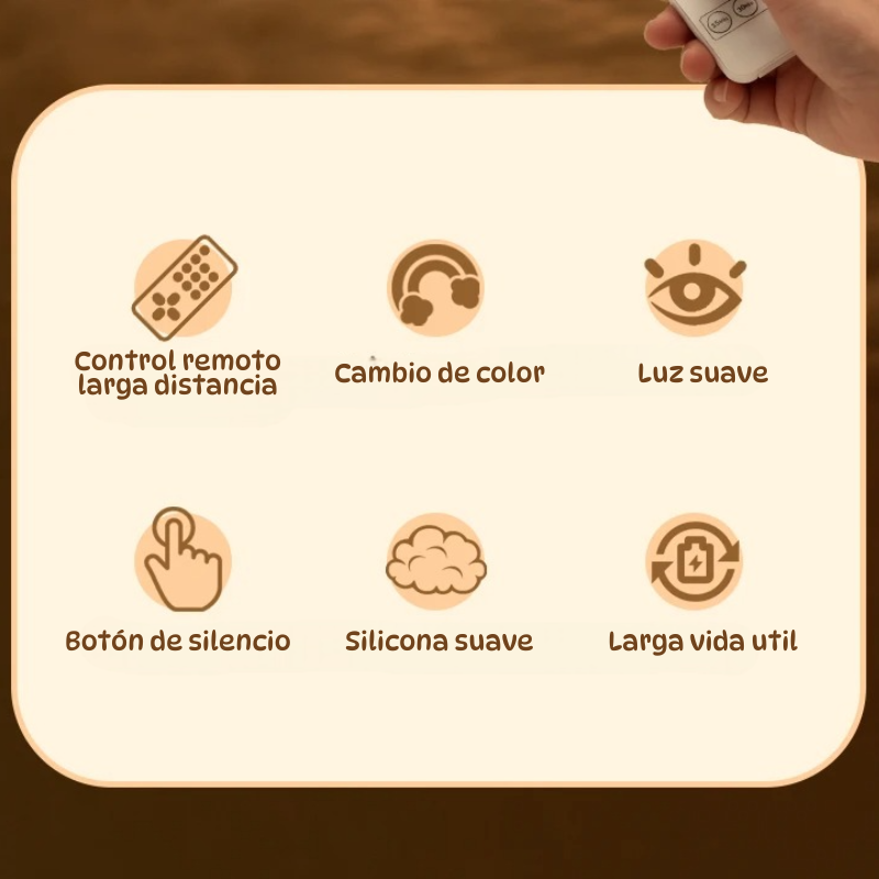 Elige tu estilo con 6 colores diferentes y disfruta de una compañía duradera, con un toque táctil y tierno que ilumina tus noches con suavidad y encanto.